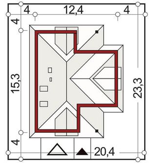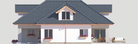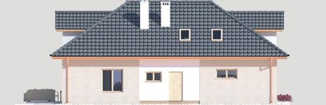 Graficzne opracowanie rzutów poglądowych widocznych na karcie projektu zostało wykonane przez Extradom.pl. Prezentowane przez Extradom.pl wizualizacje wykonane zostały przez autora projektu i należy poczytywać je jedynie za przykład i propozycję wykończenia, wizję architektoniczną autora projektu. Ostateczne wykończenie budynku może nastąpić na wiele sposobów. Szczegółowe rozwiązania zastosowane w oferowanej dokumentacji - w tym również ilość, lokalizacje i wygląd okien, drzwi, kominów - mogą w niewielkim stopniu różnić się od prezentowanej wizualizacji budynku.