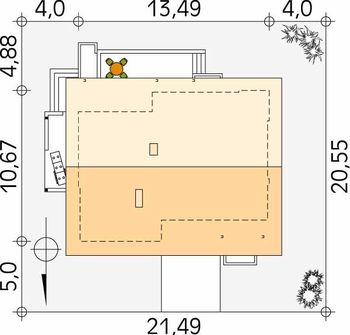 Graficzne opracowanie rzutów poglądowych widocznych na karcie projektu zostało wykonane przez Extradom.pl. Prezentowane przez Extradom.pl wizualizacje wykonane zostały przez autora projektu i należy poczytywać je jedynie za przykład i propozycję wykończenia, wizję architektoniczną autora projektu. Ostateczne wykończenie budynku może nastąpić na wiele sposobów. Szczegółowe rozwiązania zastosowane w oferowanej dokumentacji - w tym również ilość, lokalizacje i wygląd okien, drzwi, kominów - mogą w niewielkim stopniu różnić się od prezentowanej wizualizacji budynku.