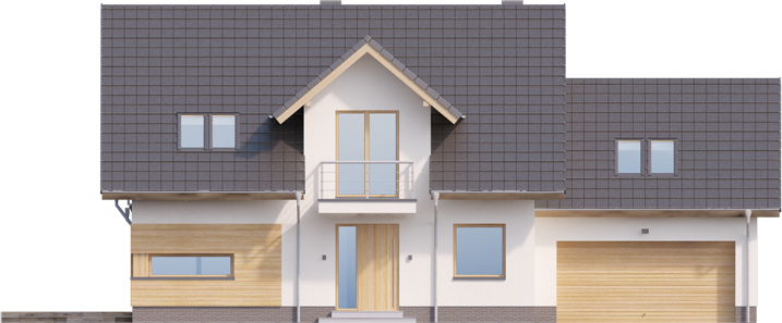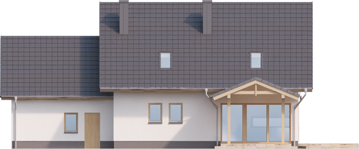 Graficzne opracowanie rzutów poglądowych widocznych na karcie projektu zostało wykonane przez Extradom.pl. Prezentowane przez Extradom.pl wizualizacje wykonane zostały przez autora projektu i należy poczytywać je jedynie za przykład i propozycję wykończenia, wizję architektoniczną autora projektu. Ostateczne wykończenie budynku może nastąpić na wiele sposobów. Szczegółowe rozwiązania zastosowane w oferowanej dokumentacji - w tym również ilość, lokalizacje i wygląd okien, drzwi, kominów - mogą w niewielkim stopniu różnić się od prezentowanej wizualizacji budynku.