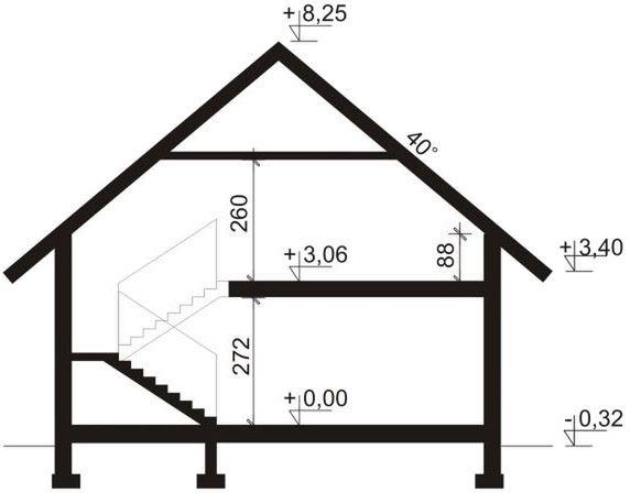 Fundamenty: bezpośrednie, na ławach i stopach fundamentowych. Ściany zewnętrzne: bloczki z bet. komórkowego - 24 cm + styropian TERMO ORGANIKA typ Fasada 16 cm. Ściany wewnętrzne: bloczki z bet. komórkowego - 24 cm (działowe - 12 cm) + działowe z płyty G-K na ruszcie (poddasze). Strop: gęstożebrowy Teriva E oraz żelbetowy monolityczny grubości 24 i 14 cm. Elewacje: tynk - System Platinum firmy TERMO ORGANIKA, płytki klinkierowe, deska elewacyjna. Pokrycie dachu: dachówka cementowa. Konstrukcja dachu: drewniana o układzie konstrukcyjnym krokwiowo-płatwiowym i krokwiowo-jętkowym. Schody wewnętrzne: żelbetowe monolityczne płytowe, zabiegowe. Ogrzewanie: kocioł gazowy kondensacyjny lub kocioł na paliwo stałe, dodatkowe źródło ciepła - kominek z płaszczem wodnym. Projekt jest zgodny z wymaganiami WT2024, a konstrukcja była obliczana zgodnie z eurokodami.