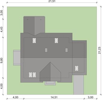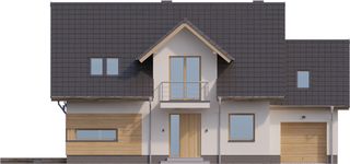Graficzne opracowanie rzutów poglądowych widocznych na karcie projektu zostało wykonane przez Extradom.pl. Prezentowane przez Extradom.pl wizualizacje wykonane zostały przez autora projektu i należy poczytywać je jedynie za przykład i propozycję wykończenia, wizję architektoniczną autora projektu. Ostateczne wykończenie budynku może nastąpić na wiele sposobów. Szczegółowe rozwiązania zastosowane w oferowanej dokumentacji - w tym również ilość, lokalizacje i wygląd okien, drzwi, kominów - mogą w niewielkim stopniu różnić się od prezentowanej wizualizacji budynku.