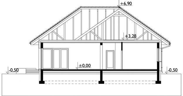 Wersja technologiczna: murowana - beton komórkowy. Strop: drewniany, alternatywnie strop VECTOR firmy Konbet Poznań. Typ schodów: brak. Konstrukcja dachu: prefabrykowane wiązary drewniane MITEK Industries Polska. Typ ogrzewania: Kocioł na gaz. Możliwość adaptacji do paliwa stałego: Tak. Dostępna wersja z pompą ciepła: Tak. Wentylacja: mechaniczna. System kominowy: firmy JAWAR. Ściany zewnętrzne: 24 cm beton komórkowy. Ściany wewnętrzne: 24 cm beton komórkowy. Ściany wewnętrzne działowe: 12 cm beton komórkowy. Wentylacja: mechaniczna.