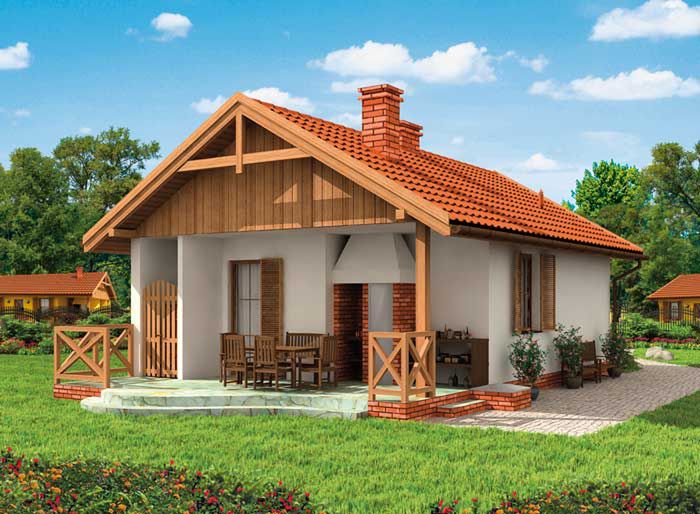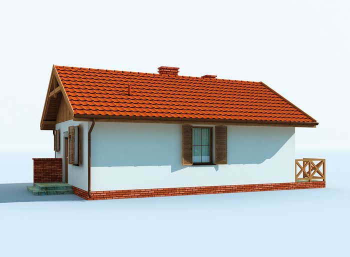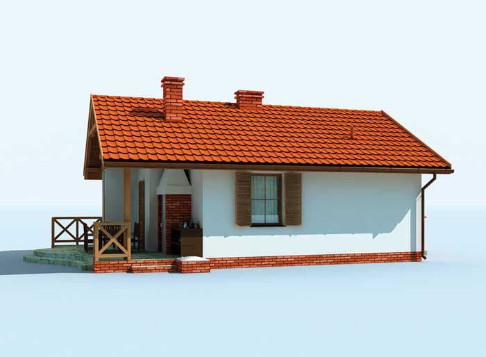 Technologia tradycyjna : - powierzchnia zabudowy - 49,93m2 - powierzchnia użytkowa- 60,00m2 - powierzchnia całkowita - 72,49m2 - kubatura - 232,00m3 - ściany zewnętrzne murowane grubości 30 cm + 5 cm plyty styropianowe - ściany wewnętrzne działowe gr. 12 cm - wszystkie ściany wykonane z pustaków ceramicznych "POROTHERM" - konstrukcja więźby dachowej drewniana w układzie krokwiowo - pokrycie dachówka ceramiczna - projekt posiada kominek