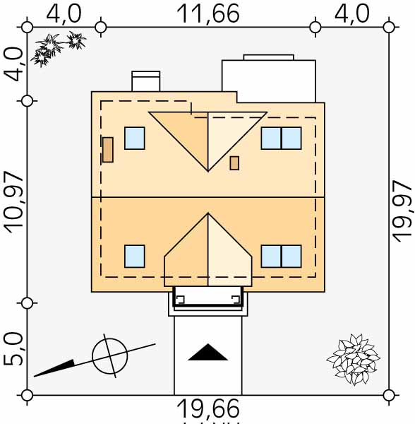 Ściany: 2-warstwowe - beton komórkowy + styropian Termo Organika. Stropy: żelbetowe, wylewane. Dach: dachówka ceramiczna CREATON, kąt nachylenia 40°. Ogrzewanie: gazowe, pakiet "Kotłownia na paliwo stałe", olejowe.