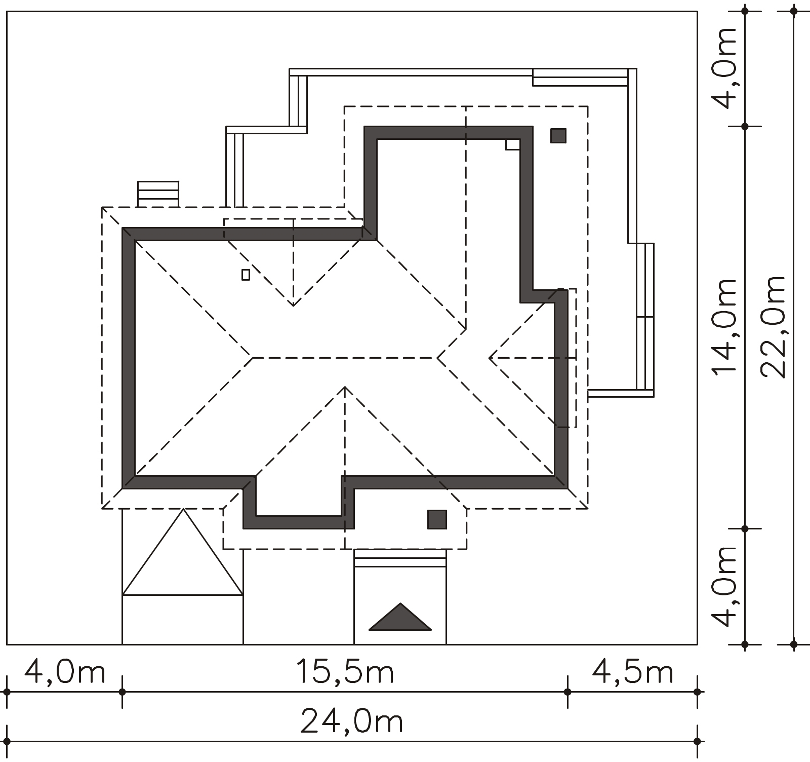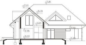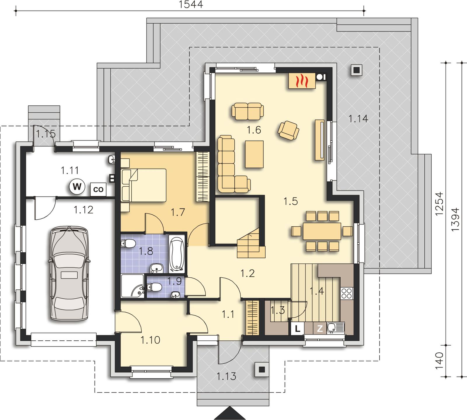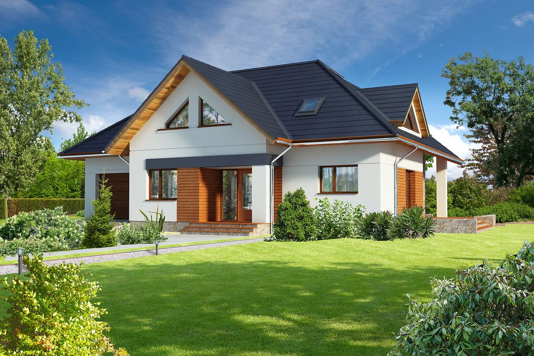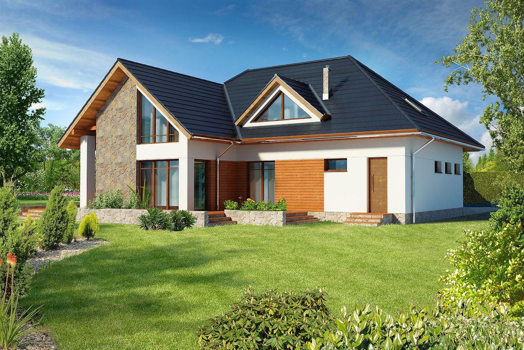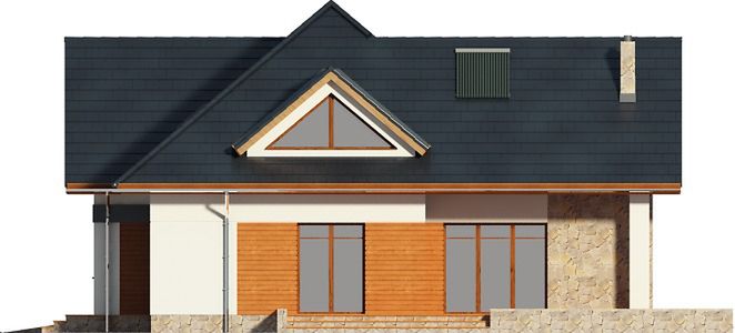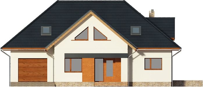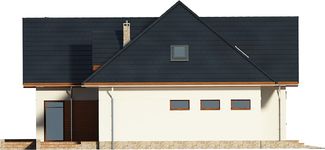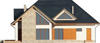 Graficzne opracowanie rzutów poglądowych widocznych na karcie projektu zostało wykonane przez Extradom.pl. Prezentowane przez Extradom.pl wizualizacje wykonane zostały przez autora projektu i należy poczytywać je jedynie za przykład i propozycję wykończenia, wizję architektoniczną autora projektu. Ostateczne wykończenie budynku może nastąpić na wiele sposobów. Szczegółowe rozwiązania zastosowane w oferowanej dokumentacji - w tym również ilość, lokalizacje i wygląd okien, drzwi, kominów - mogą w niewielkim stopniu różnić się od prezentowanej wizualizacji budynku.