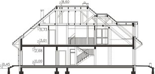 Fundamenty - rozwiązanie o podwyższonej izolacji termicznej. Ściany zewnętrzne - Bloczek silikatowy 24 cm + styropian 20 cm. Strop - gęstożebrowy. Dach - tradycyjna więźba ciesielska. Ogrzewanie - c.o. grzejnikowe + c.w.u. - kocioł gazowy. Wentylacja - rekuperacja.