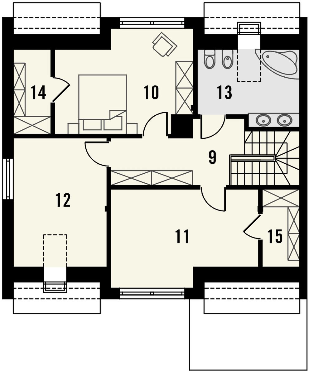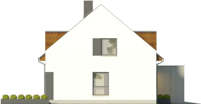 Graficzne opracowanie rzutów poglądowych widocznych na karcie projektu zostało wykonane przez Extradom.pl. Prezentowane przez Extradom.pl wizualizacje wykonane zostały przez autora projektu i należy poczytywać je jedynie za przykład i propozycję wykończenia, wizję architektoniczną autora projektu. Ostateczne wykończenie budynku może nastąpić na wiele sposobów. Szczegółowe rozwiązania zastosowane w oferowanej dokumentacji - w tym również ilość, lokalizacje i wygląd okien, drzwi, kominów - mogą w niewielkim stopniu różnić się od prezentowanej wizualizacji budynku.