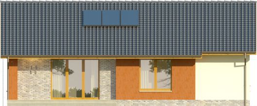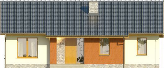 Graficzne opracowanie rzutów poglądowych widocznych na karcie projektu zostało wykonane przez Extradom.pl. Prezentowane przez Extradom.pl wizualizacje wykonane zostały przez autora projektu i należy poczytywać je jedynie za przykład i propozycję wykończenia, wizję architektoniczną autora projektu. Ostateczne wykończenie budynku może nastąpić na wiele sposobów. Szczegółowe rozwiązania zastosowane w oferowanej dokumentacji - w tym również ilość, lokalizacje i wygląd okien, drzwi, kominów - mogą w niewielkim stopniu różnić się od prezentowanej wizualizacji budynku.
