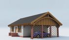 Budynek o zwartej bryle, parterowy, przekryty dachem dwuspadowym. Maksymalna wysokość budynku wynosi 5,22m. Nowoprojektowany budynek swoją formą nawiązywać winien do zabudowy występującej w sąsiedztwie planowanej inwestycji. KONSTRUKCJA:Główne rozwiązania konstrukcyjno-materiałowe: Projektowany budynek wykonany będzie w technologii lekkiego szkieletu drewnianego.Główną konstrukcję nośną stanowić będą: ławy słupy i wieniec opaskowy - zazbrojone konstrukcyjnie, ściany nośne w szkielecie drewnianym spięte podwójnym oczepem, dach dwuspadowy oparty na więźbie o konstrukcji drewnianej krokwiowo-jętkowej.