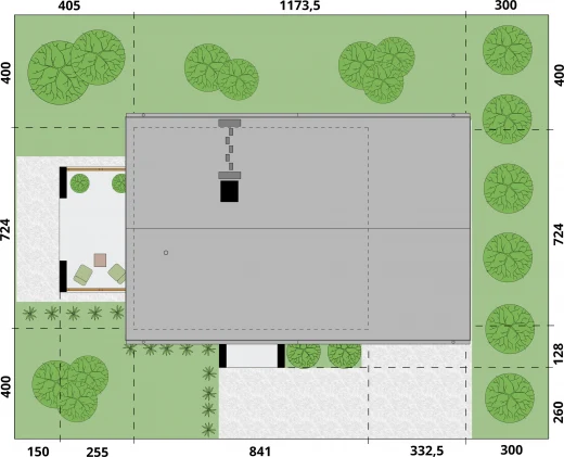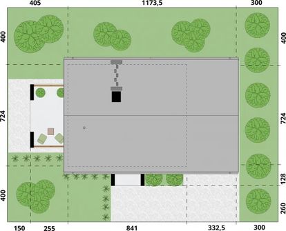 Graficzne opracowanie rzutów poglądowych widocznych na karcie projektu zostało wykonane przez Extradom.pl. Prezentowane przez Extradom.pl wizualizacje wykonane zostały przez autora projektu i należy poczytywać je jedynie za przykład i propozycję wykończenia, wizję architektoniczną autora projektu. Ostateczne wykończenie budynku może nastąpić na wiele sposobów. Szczegółowe rozwiązania zastosowane w oferowanej dokumentacji - w tym również ilość, lokalizacje i wygląd okien, drzwi, kominów - mogą w niewielkim stopniu różnić się od prezentowanej wizualizacji budynku.