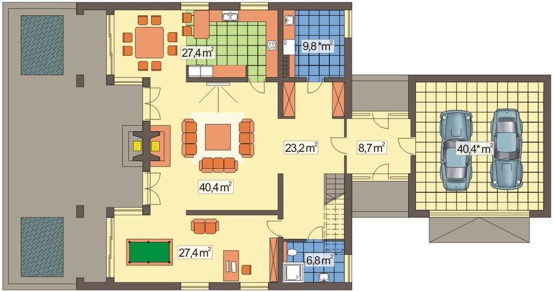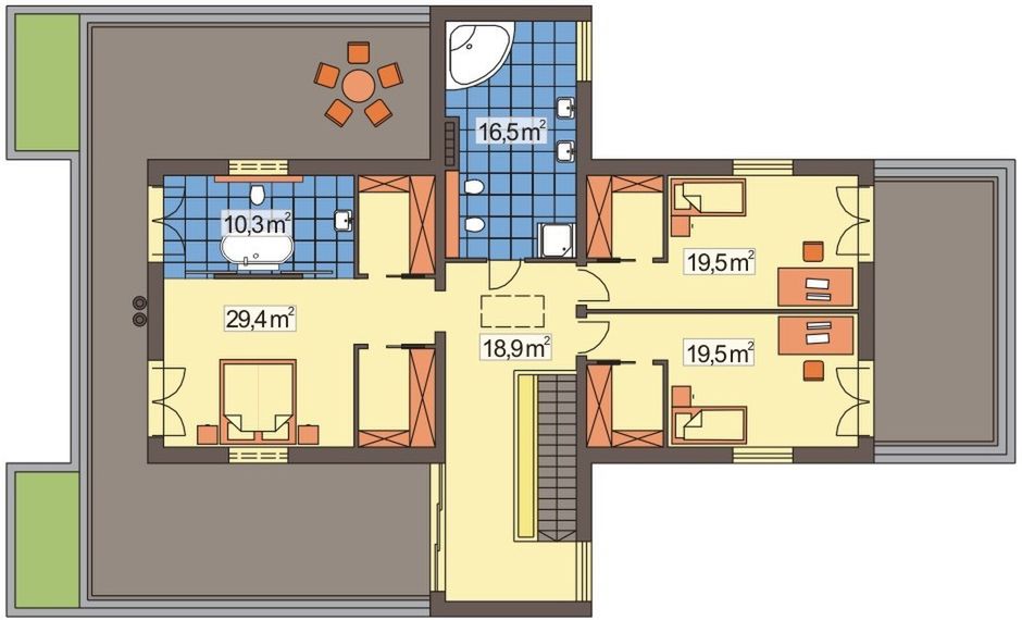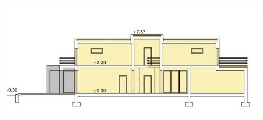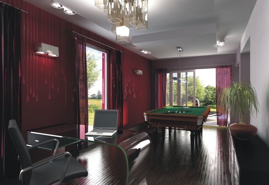 Graficzne opracowanie rzutów poglądowych widocznych na karcie projektu zostało wykonane przez Extradom.pl. Prezentowane przez Extradom.pl wizualizacje wykonane zostały przez autora projektu i należy poczytywać je jedynie za przykład i propozycję wykończenia, wizję architektoniczną autora projektu. Ostateczne wykończenie budynku może nastąpić na wiele sposobów. Szczegółowe rozwiązania zastosowane w oferowanej dokumentacji - w tym również ilość, lokalizacje i wygląd okien, drzwi, kominów - mogą w niewielkim stopniu różnić się od prezentowanej wizualizacji budynku.