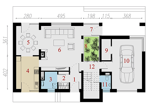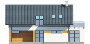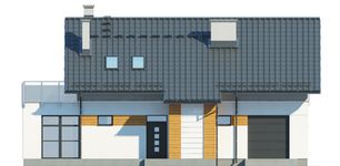Graficzne opracowanie rzutów poglądowych widocznych na karcie projektu zostało wykonane przez Extradom.pl. Prezentowane przez Extradom.pl wizualizacje wykonane zostały przez autora projektu i należy poczytywać je jedynie za przykład i propozycję wykończenia, wizję architektoniczną autora projektu. Ostateczne wykończenie budynku może nastąpić na wiele sposobów. Szczegółowe rozwiązania zastosowane w oferowanej dokumentacji - w tym również ilość, lokalizacje i wygląd okien, drzwi, kominów - mogą w niewielkim stopniu różnić się od prezentowanej wizualizacji budynku.