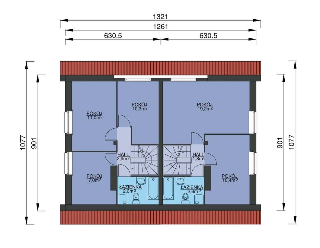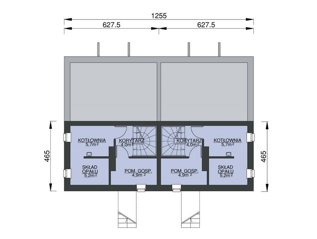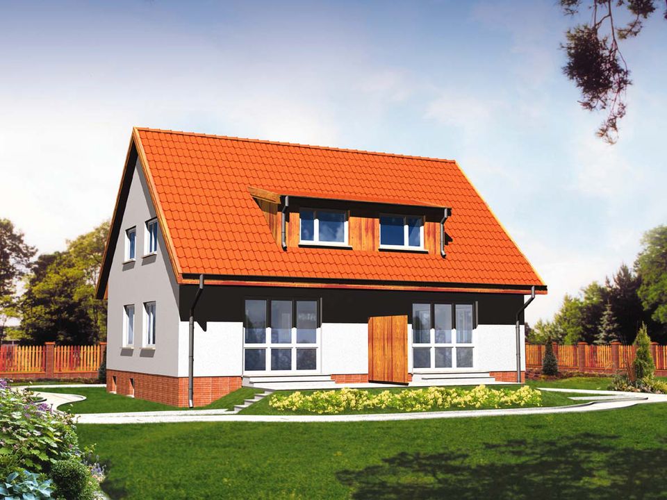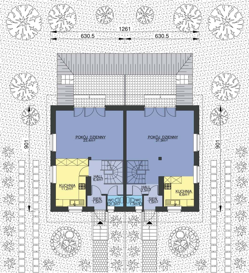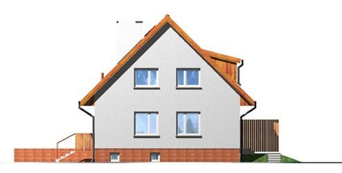 Graficzne opracowanie rzutów poglądowych widocznych na karcie projektu zostało wykonane przez Extradom.pl. Prezentowane przez Extradom.pl wizualizacje wykonane zostały przez autora projektu i należy poczytywać je jedynie za przykład i propozycję wykończenia, wizję architektoniczną autora projektu. Ostateczne wykończenie budynku może nastąpić na wiele sposobów. Szczegółowe rozwiązania zastosowane w oferowanej dokumentacji - w tym również ilość, lokalizacje i wygląd okien, drzwi, kominów - mogą w niewielkim stopniu różnić się od prezentowanej wizualizacji budynku.