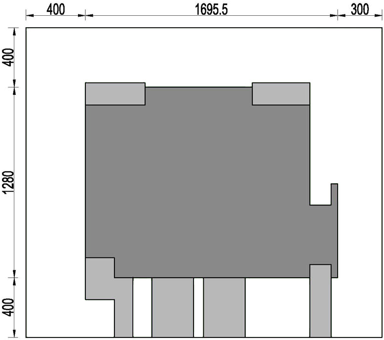 Fundament: ławy fundamentowe. Ściany zewnętrzne: murowane, dwuwarstwowe. Ściany wewnętrzne: murowane. Strop: gęstożebrowy. Dach: stropodach.