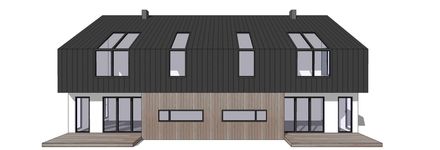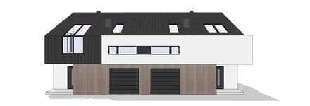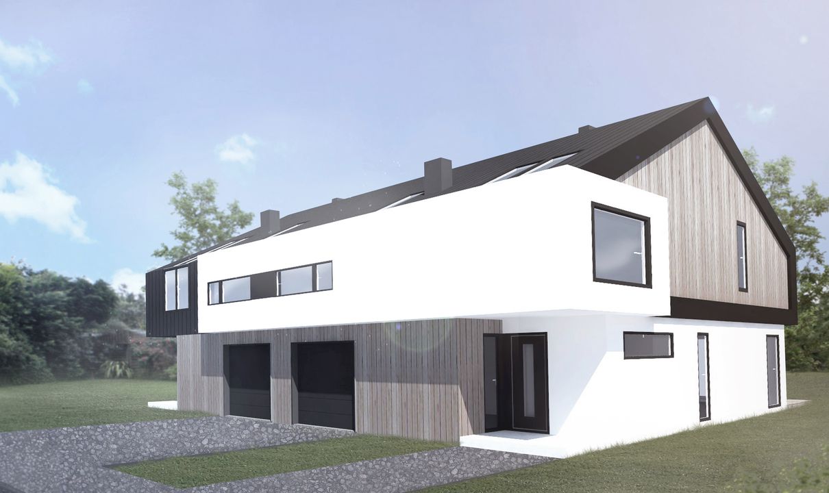 Graficzne opracowanie rzutów poglądowych widocznych na karcie projektu zostało wykonane przez Extradom.pl. Prezentowane przez Extradom.pl wizualizacje wykonane zostały przez autora projektu i należy poczytywać je jedynie za przykład i propozycję wykończenia, wizję architektoniczną autora projektu. Ostateczne wykończenie budynku może nastąpić na wiele sposobów. Szczegółowe rozwiązania zastosowane w oferowanej dokumentacji - w tym również ilość, lokalizacje i wygląd okien, drzwi, kominów - mogą w niewielkim stopniu różnić się od prezentowanej wizualizacji budynku.