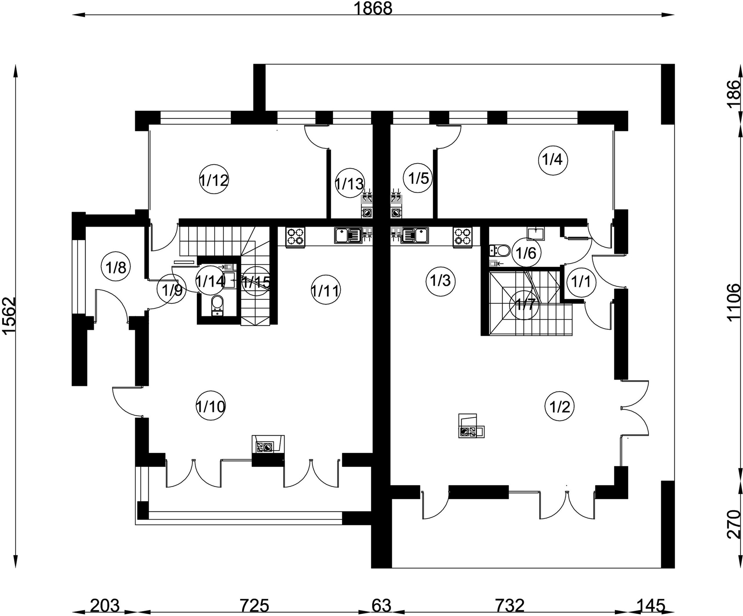 Graficzne opracowanie rzutów poglądowych widocznych na karcie projektu zostało wykonane przez Extradom.pl. Prezentowane przez Extradom.pl wizualizacje wykonane zostały przez autora projektu i należy poczytywać je jedynie za przykład i propozycję wykończenia, wizję architektoniczną autora projektu. Ostateczne wykończenie budynku może nastąpić na wiele sposobów. Szczegółowe rozwiązania zastosowane w oferowanej dokumentacji - w tym również ilość, lokalizacje i wygląd okien, drzwi, kominów - mogą w niewielkim stopniu różnić się od prezentowanej wizualizacji budynku.
