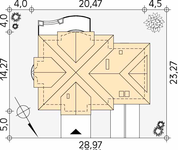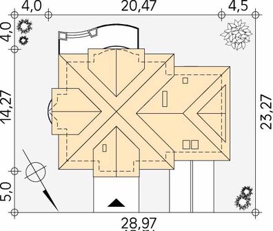 Graficzne opracowanie rzutów poglądowych widocznych na karcie projektu zostało wykonane przez Extradom.pl. Prezentowane przez Extradom.pl wizualizacje wykonane zostały przez autora projektu i należy poczytywać je jedynie za przykład i propozycję wykończenia, wizję architektoniczną autora projektu. Ostateczne wykończenie budynku może nastąpić na wiele sposobów. Szczegółowe rozwiązania zastosowane w oferowanej dokumentacji - w tym również ilość, lokalizacje i wygląd okien, drzwi, kominów - mogą w niewielkim stopniu różnić się od prezentowanej wizualizacji budynku.