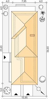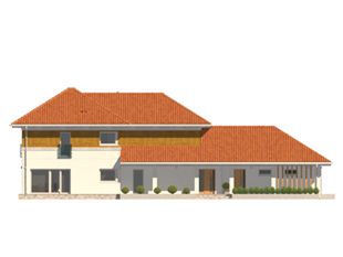 Graficzne opracowanie rzutów poglądowych widocznych na karcie projektu zostało wykonane przez Extradom.pl. Prezentowane przez Extradom.pl wizualizacje wykonane zostały przez autora projektu i należy poczytywać je jedynie za przykład i propozycję wykończenia, wizję architektoniczną autora projektu. Ostateczne wykończenie budynku może nastąpić na wiele sposobów. Szczegółowe rozwiązania zastosowane w oferowanej dokumentacji - w tym również ilość, lokalizacje i wygląd okien, drzwi, kominów - mogą w niewielkim stopniu różnić się od prezentowanej wizualizacji budynku.
