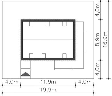 Graficzne opracowanie rzutów poglądowych widocznych na karcie projektu zostało wykonane przez Extradom.pl. Prezentowane przez Extradom.pl wizualizacje wykonane zostały przez autora projektu i należy poczytywać je jedynie za przykład i propozycję wykończenia, wizję architektoniczną autora projektu. Ostateczne wykończenie budynku może nastąpić na wiele sposobów. Szczegółowe rozwiązania zastosowane w oferowanej dokumentacji - w tym również ilość, lokalizacje i wygląd okien, drzwi, kominów - mogą w niewielkim stopniu różnić się od prezentowanej wizualizacji budynku.