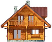Posadowienie budynku: ława fundamentowa; Ściany zewnętrzne: z balika drewnianego (8cm) + szkieletowa z wełną izolacyjną 20cm; Ściany wewnętrzne: parter: balik drewniany (8cm) lub kosztrukcja szkieletowa z płytami g-k (8cm); piętro: konstrukcja szkieletowa 8cm; Strop nad parterem: drewniany; Konstrukcja dachu: drewniana, krokwiowo-jętkowa; Pokrycie dachu: blachodachówka; Elewacja: balik drewniany (8cm);