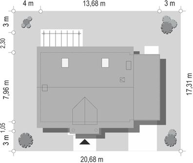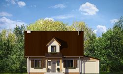 Graficzne opracowanie rzutów poglądowych widocznych na karcie projektu zostało wykonane przez Extradom.pl. Prezentowane przez Extradom.pl wizualizacje wykonane zostały przez autora projektu i należy poczytywać je jedynie za przykład i propozycję wykończenia, wizję architektoniczną autora projektu. Ostateczne wykończenie budynku może nastąpić na wiele sposobów. Szczegółowe rozwiązania zastosowane w oferowanej dokumentacji - w tym również ilość, lokalizacje i wygląd okien, drzwi, kominów - mogą w niewielkim stopniu różnić się od prezentowanej wizualizacji budynku.