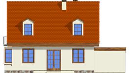 Graficzne opracowanie rzutów poglądowych widocznych na karcie projektu zostało wykonane przez Extradom.pl. Prezentowane przez Extradom.pl wizualizacje wykonane zostały przez autora projektu i należy poczytywać je jedynie za przykład i propozycję wykończenia, wizję architektoniczną autora projektu. Ostateczne wykończenie budynku może nastąpić na wiele sposobów. Szczegółowe rozwiązania zastosowane w oferowanej dokumentacji - w tym również ilość, lokalizacje i wygląd okien, drzwi, kominów - mogą w niewielkim stopniu różnić się od prezentowanej wizualizacji budynku.