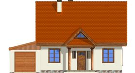 Graficzne opracowanie rzutów poglądowych widocznych na karcie projektu zostało wykonane przez Extradom.pl. Prezentowane przez Extradom.pl wizualizacje wykonane zostały przez autora projektu i należy poczytywać je jedynie za przykład i propozycję wykończenia, wizję architektoniczną autora projektu. Ostateczne wykończenie budynku może nastąpić na wiele sposobów. Szczegółowe rozwiązania zastosowane w oferowanej dokumentacji - w tym również ilość, lokalizacje i wygląd okien, drzwi, kominów - mogą w niewielkim stopniu różnić się od prezentowanej wizualizacji budynku.