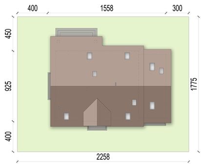 Graficzne opracowanie rzutów poglądowych widocznych na karcie projektu zostało wykonane przez Extradom.pl. Prezentowane przez Extradom.pl wizualizacje wykonane zostały przez autora projektu i należy poczytywać je jedynie za przykład i propozycję wykończenia, wizję architektoniczną autora projektu. Ostateczne wykończenie budynku może nastąpić na wiele sposobów. Szczegółowe rozwiązania zastosowane w oferowanej dokumentacji - w tym również ilość, lokalizacje i wygląd okien, drzwi, kominów - mogą w niewielkim stopniu różnić się od prezentowanej wizualizacji budynku.