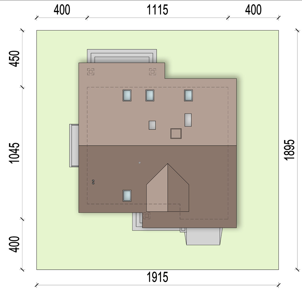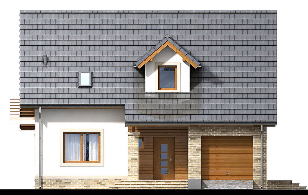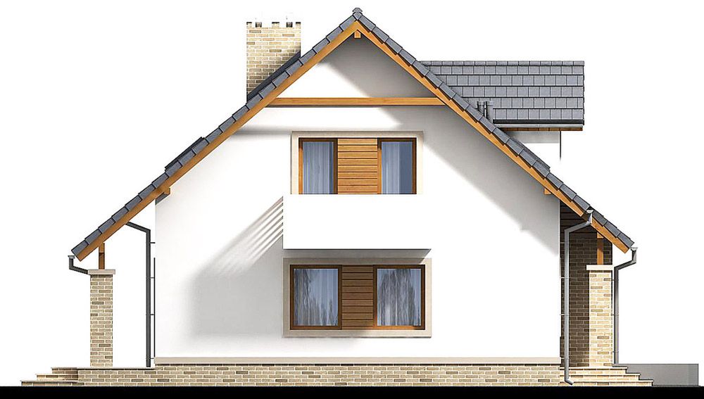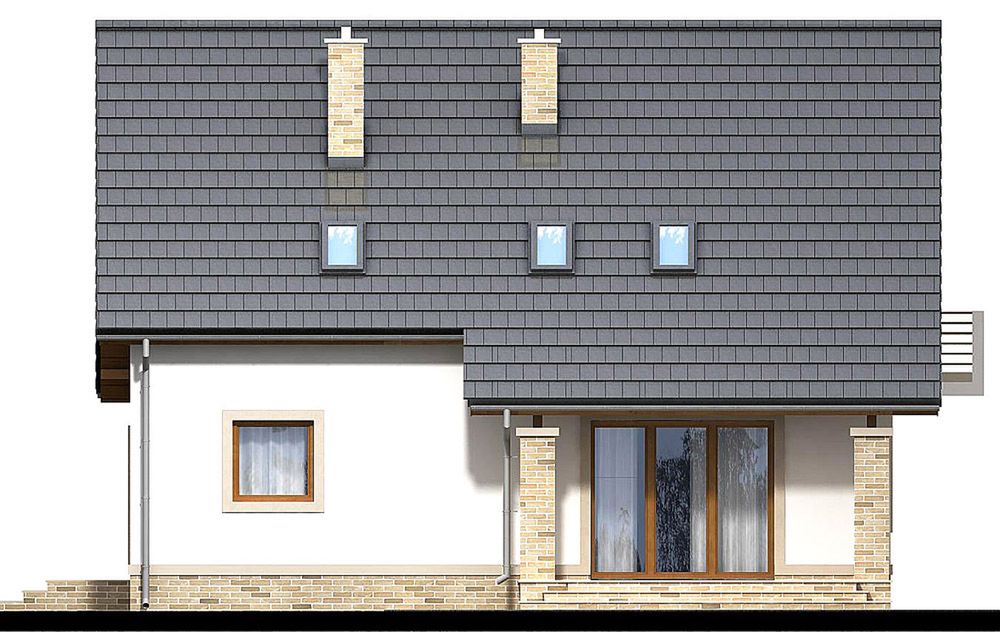 Graficzne opracowanie rzutów poglądowych widocznych na karcie projektu zostało wykonane przez Extradom.pl. Prezentowane przez Extradom.pl wizualizacje wykonane zostały przez autora projektu i należy poczytywać je jedynie za przykład i propozycję wykończenia, wizję architektoniczną autora projektu. Ostateczne wykończenie budynku może nastąpić na wiele sposobów. Szczegółowe rozwiązania zastosowane w oferowanej dokumentacji - w tym również ilość, lokalizacje i wygląd okien, drzwi, kominów - mogą w niewielkim stopniu różnić się od prezentowanej wizualizacji budynku.