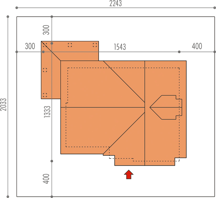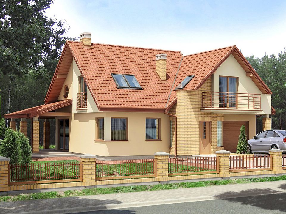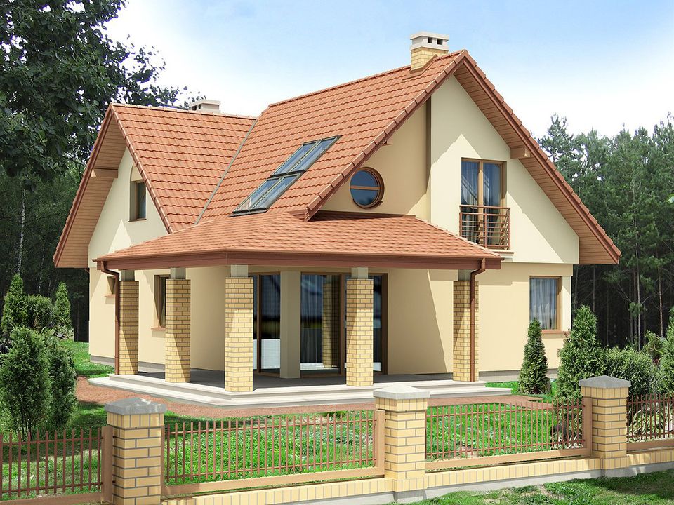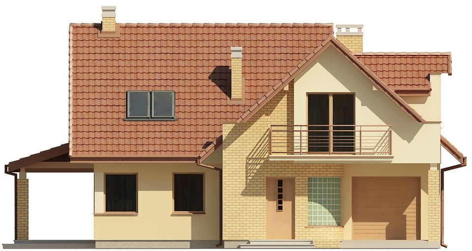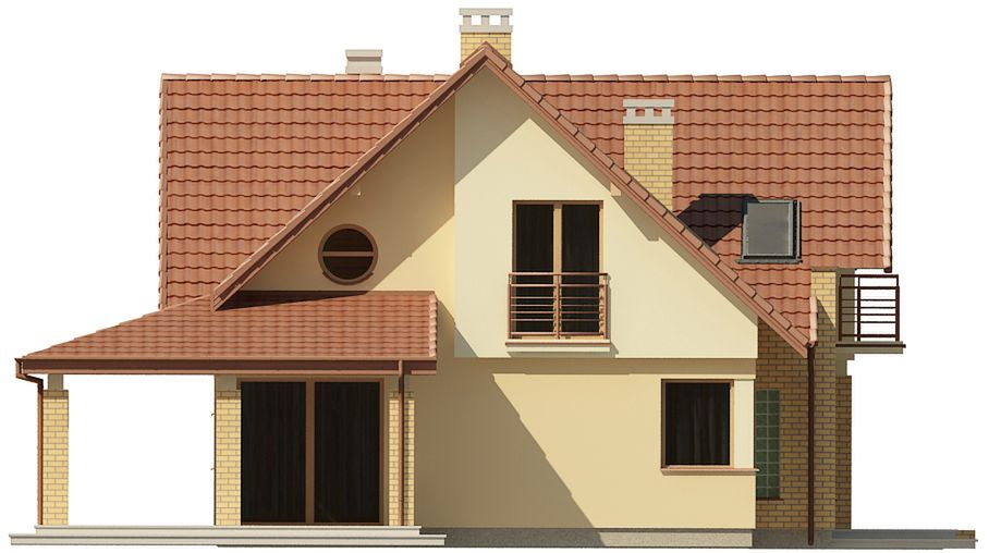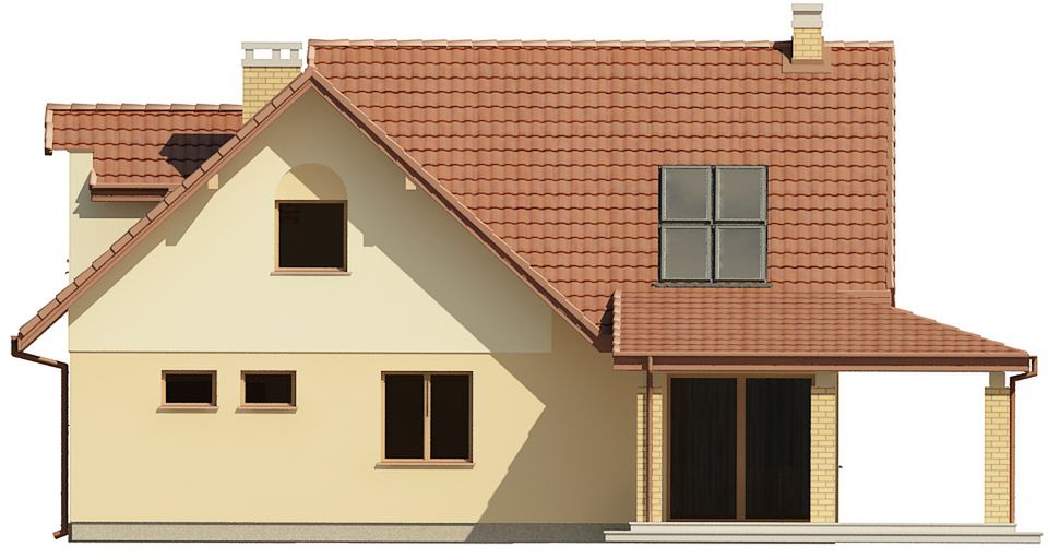 Graficzne opracowanie rzutów poglądowych widocznych na karcie projektu zostało wykonane przez Extradom.pl. Prezentowane przez Extradom.pl wizualizacje wykonane zostały przez autora projektu i należy poczytywać je jedynie za przykład i propozycję wykończenia, wizję architektoniczną autora projektu. Ostateczne wykończenie budynku może nastąpić na wiele sposobów. Szczegółowe rozwiązania zastosowane w oferowanej dokumentacji - w tym również ilość, lokalizacje i wygląd okien, drzwi, kominów - mogą w niewielkim stopniu różnić się od prezentowanej wizualizacji budynku.