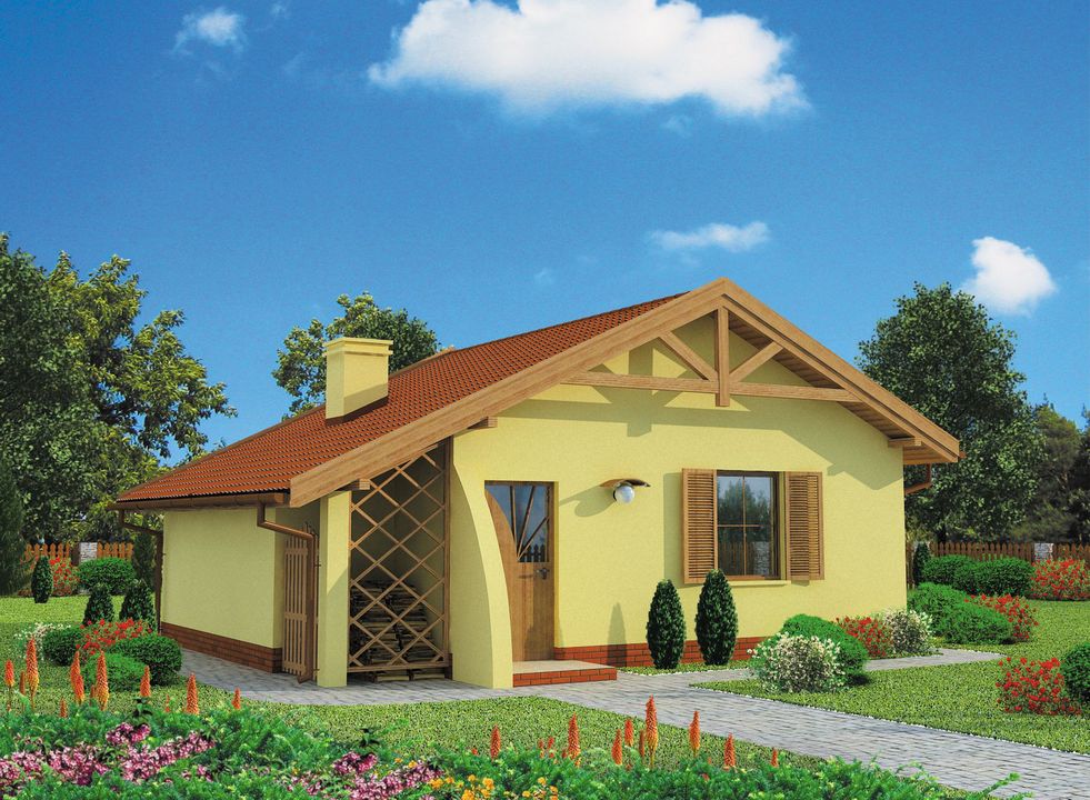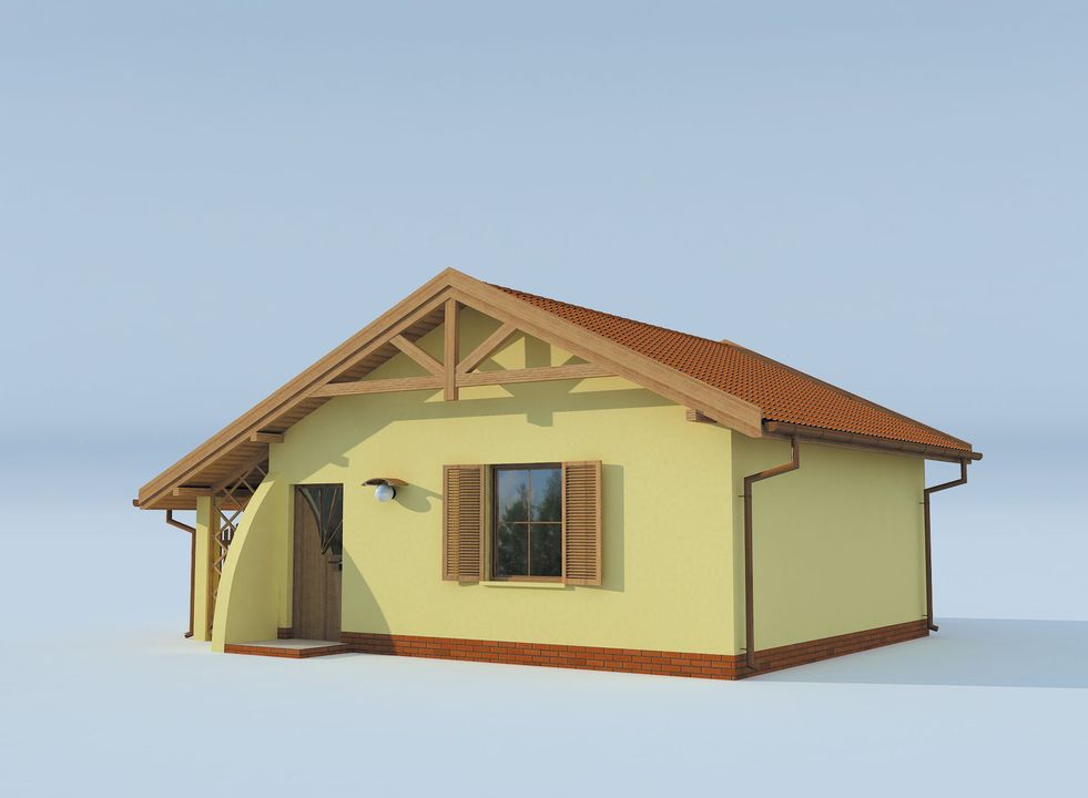 Graficzne opracowanie rzutów poglądowych widocznych na karcie projektu zostało wykonane przez Extradom.pl. Prezentowane przez Extradom.pl wizualizacje wykonane zostały przez autora projektu i należy poczytywać je jedynie za przykład i propozycję wykończenia, wizję architektoniczną autora projektu. Ostateczne wykończenie budynku może nastąpić na wiele sposobów. Szczegółowe rozwiązania zastosowane w oferowanej dokumentacji - w tym również ilość, lokalizacje i wygląd okien, drzwi, kominów - mogą w niewielkim stopniu różnić się od prezentowanej wizualizacji budynku.