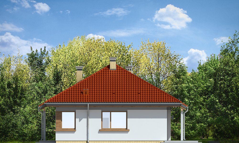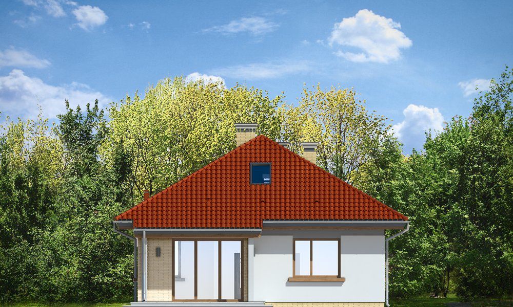 Graficzne opracowanie rzutów poglądowych widocznych na karcie projektu zostało wykonane przez Extradom.pl. Prezentowane przez Extradom.pl wizualizacje wykonane zostały przez autora projektu i należy poczytywać je jedynie za przykład i propozycję wykończenia, wizję architektoniczną autora projektu. Ostateczne wykończenie budynku może nastąpić na wiele sposobów. Szczegółowe rozwiązania zastosowane w oferowanej dokumentacji - w tym również ilość, lokalizacje i wygląd okien, drzwi, kominów - mogą w niewielkim stopniu różnić się od prezentowanej wizualizacji budynku.