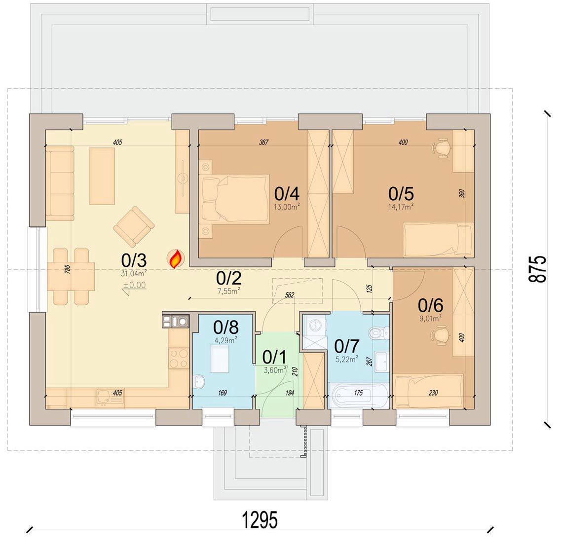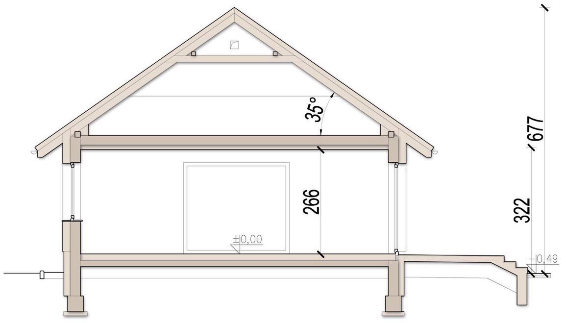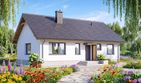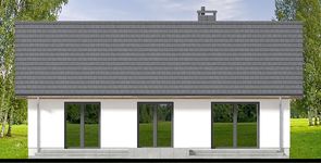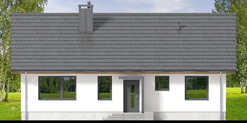 Graficzne opracowanie rzutów poglądowych widocznych na karcie projektu zostało wykonane przez Extradom.pl. Prezentowane przez Extradom.pl wizualizacje wykonane zostały przez autora projektu i należy poczytywać je jedynie za przykład i propozycję wykończenia, wizję architektoniczną autora projektu. Ostateczne wykończenie budynku może nastąpić na wiele sposobów. Szczegółowe rozwiązania zastosowane w oferowanej dokumentacji - w tym również ilość, lokalizacje i wygląd okien, drzwi, kominów - mogą w niewielkim stopniu różnić się od prezentowanej wizualizacji budynku.