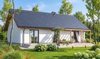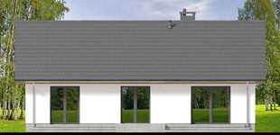 Graficzne opracowanie rzutów poglądowych widocznych na karcie projektu zostało wykonane przez Extradom.pl. Prezentowane przez Extradom.pl wizualizacje wykonane zostały przez autora projektu i należy poczytywać je jedynie za przykład i propozycję wykończenia, wizję architektoniczną autora projektu. Ostateczne wykończenie budynku może nastąpić na wiele sposobów. Szczegółowe rozwiązania zastosowane w oferowanej dokumentacji - w tym również ilość, lokalizacje i wygląd okien, drzwi, kominów - mogą w niewielkim stopniu różnić się od prezentowanej wizualizacji budynku.