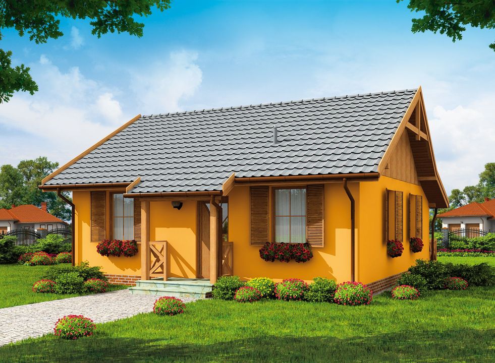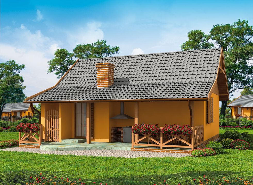 Graficzne opracowanie rzutów poglądowych widocznych na karcie projektu zostało wykonane przez Extradom.pl. Prezentowane przez Extradom.pl wizualizacje wykonane zostały przez autora projektu i należy poczytywać je jedynie za przykład i propozycję wykończenia, wizję architektoniczną autora projektu. Ostateczne wykończenie budynku może nastąpić na wiele sposobów. Szczegółowe rozwiązania zastosowane w oferowanej dokumentacji - w tym również ilość, lokalizacje i wygląd okien, drzwi, kominów - mogą w niewielkim stopniu różnić się od prezentowanej wizualizacji budynku.