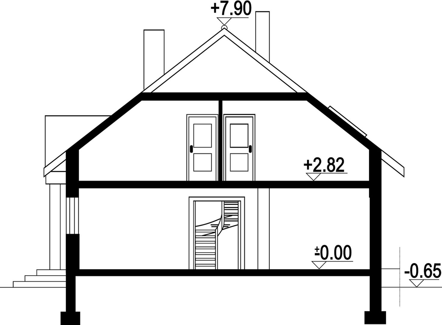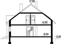 Wys. ścianki kolankowej 0.88 m Ilość drewna na więźbę 8.6 m³. Strop: płyta żelbetowa. Pokrycie dachu: dachówka ceramiczna. Ściany wewnętrzne: pustaki ceramiczne. Ściany zewnętrzne: pustaki ceramiczne + styropian. Typ ogrzewania: kocioł gazowy.