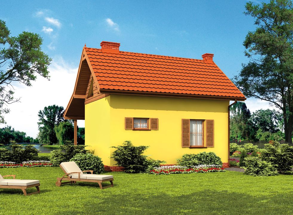 Graficzne opracowanie rzutów poglądowych widocznych na karcie projektu zostało wykonane przez Extradom.pl. Prezentowane przez Extradom.pl wizualizacje wykonane zostały przez autora projektu i należy poczytywać je jedynie za przykład i propozycję wykończenia, wizję architektoniczną autora projektu. Ostateczne wykończenie budynku może nastąpić na wiele sposobów. Szczegółowe rozwiązania zastosowane w oferowanej dokumentacji - w tym również ilość, lokalizacje i wygląd okien, drzwi, kominów - mogą w niewielkim stopniu różnić się od prezentowanej wizualizacji budynku.