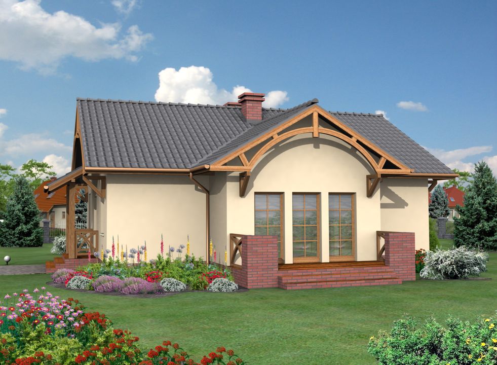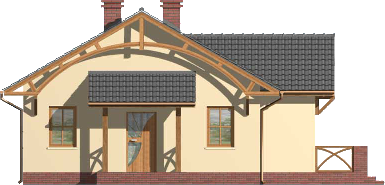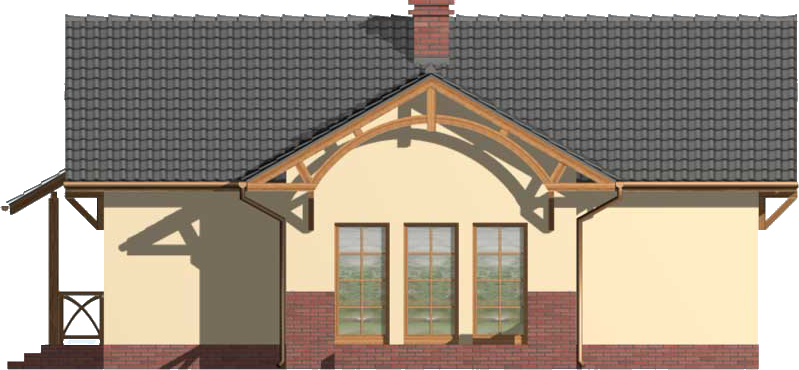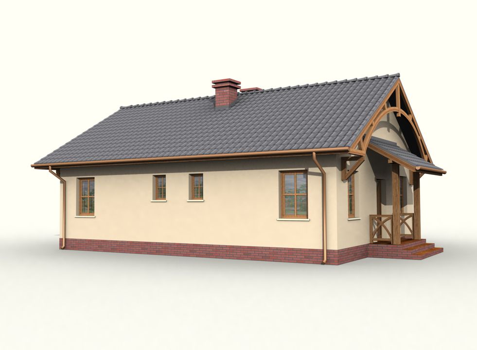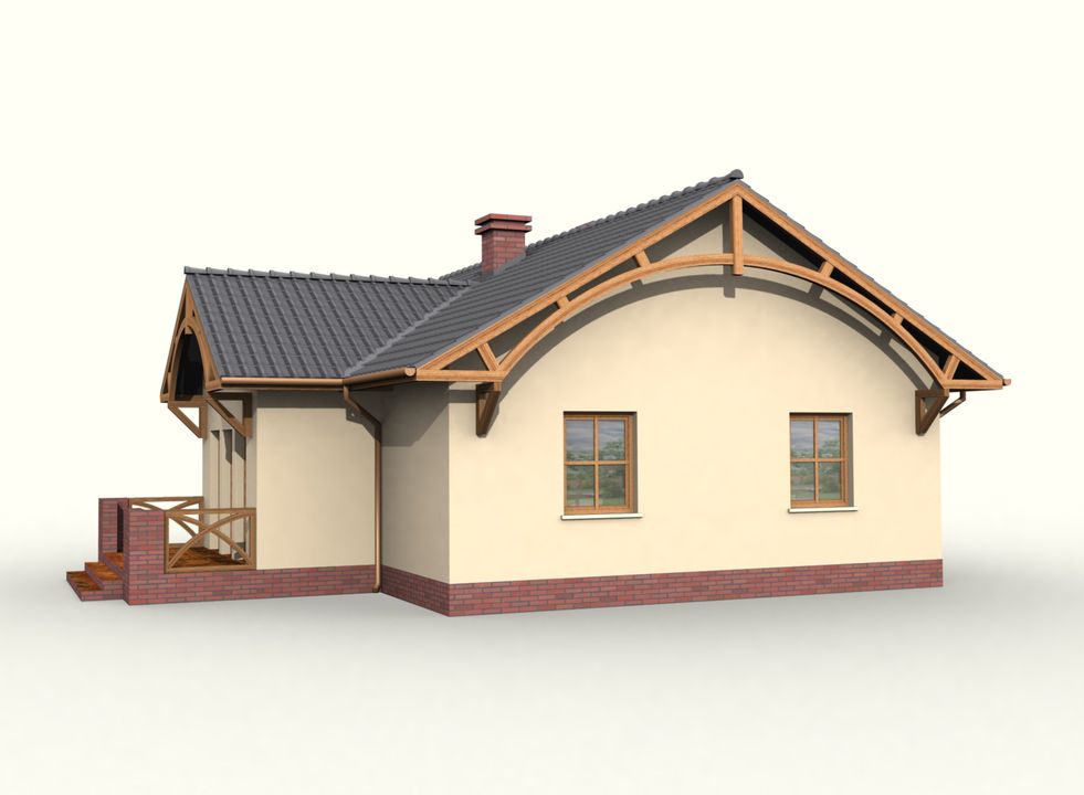Graficzne opracowanie rzutów poglądowych widocznych na karcie projektu zostało wykonane przez Extradom.pl. Prezentowane przez Extradom.pl wizualizacje wykonane zostały przez autora projektu i należy poczytywać je jedynie za przykład i propozycję wykończenia, wizję architektoniczną autora projektu. Ostateczne wykończenie budynku może nastąpić na wiele sposobów. Szczegółowe rozwiązania zastosowane w oferowanej dokumentacji - w tym również ilość, lokalizacje i wygląd okien, drzwi, kominów - mogą w niewielkim stopniu różnić się od prezentowanej wizualizacji budynku.