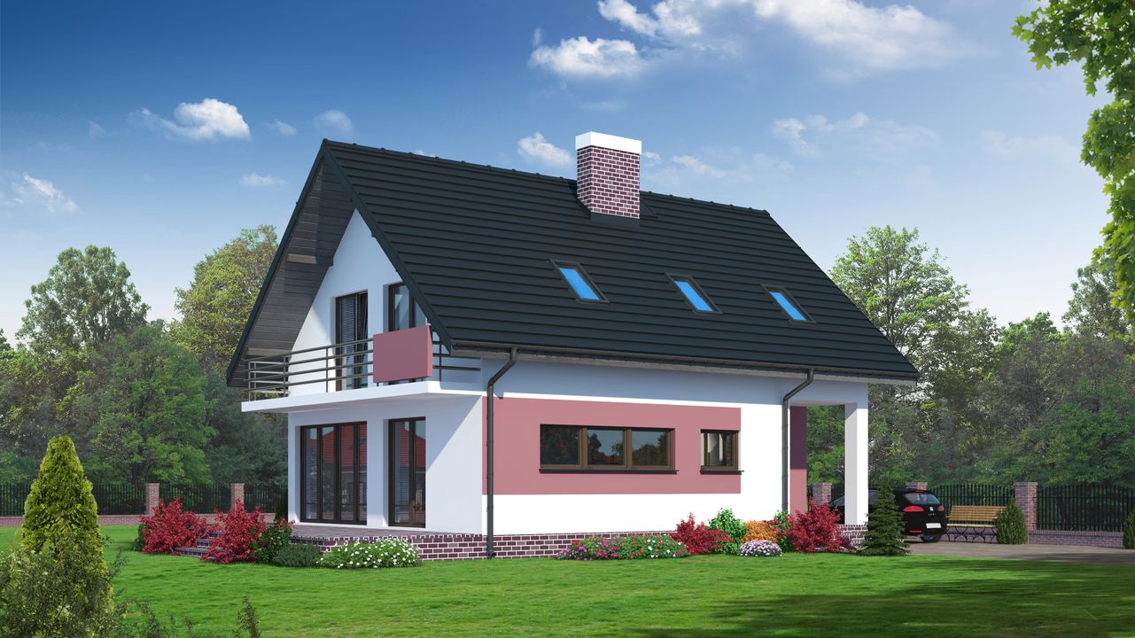Graficzne opracowanie rzutów poglądowych widocznych na karcie projektu zostało wykonane przez Extradom.pl. Prezentowane przez Extradom.pl wizualizacje wykonane zostały przez autora projektu i należy poczytywać je jedynie za przykład i propozycję wykończenia, wizję architektoniczną autora projektu. Ostateczne wykończenie budynku może nastąpić na wiele sposobów. Szczegółowe rozwiązania zastosowane w oferowanej dokumentacji - w tym również ilość, lokalizacje i wygląd okien, drzwi, kominów - mogą w niewielkim stopniu różnić się od prezentowanej wizualizacji budynku.