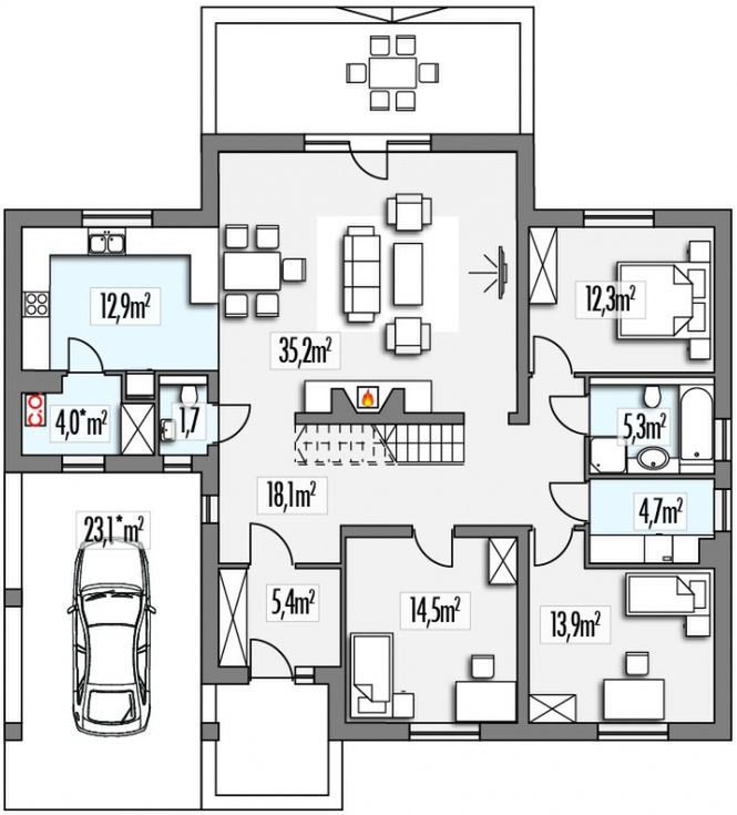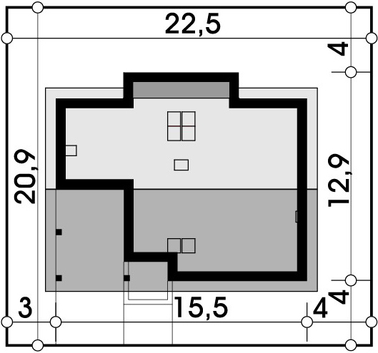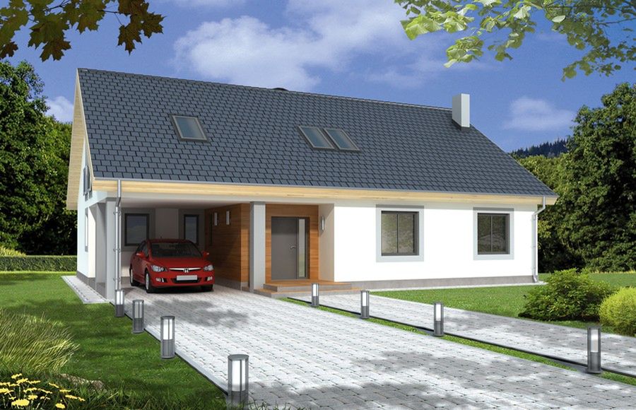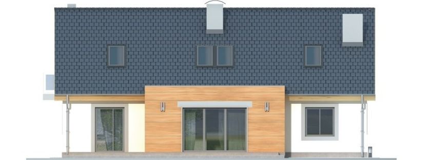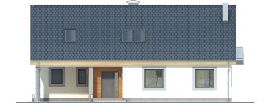 Graficzne opracowanie rzutów poglądowych widocznych na karcie projektu zostało wykonane przez Extradom.pl. Prezentowane przez Extradom.pl wizualizacje wykonane zostały przez autora projektu i należy poczytywać je jedynie za przykład i propozycję wykończenia, wizję architektoniczną autora projektu. Ostateczne wykończenie budynku może nastąpić na wiele sposobów. Szczegółowe rozwiązania zastosowane w oferowanej dokumentacji - w tym również ilość, lokalizacje i wygląd okien, drzwi, kominów - mogą w niewielkim stopniu różnić się od prezentowanej wizualizacji budynku.