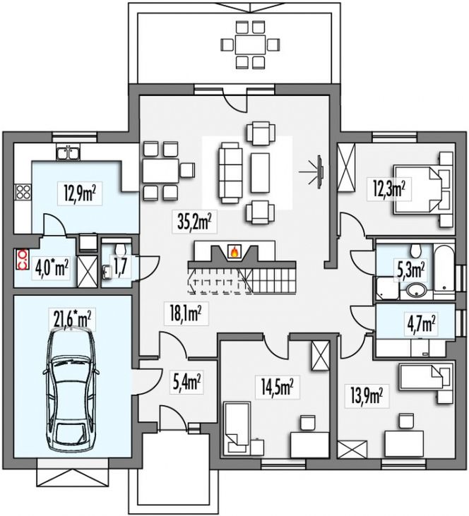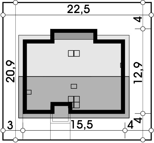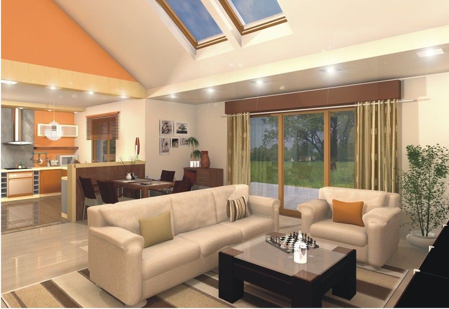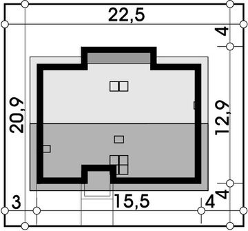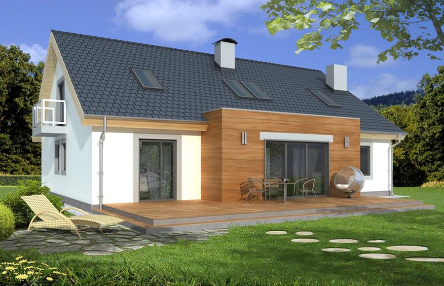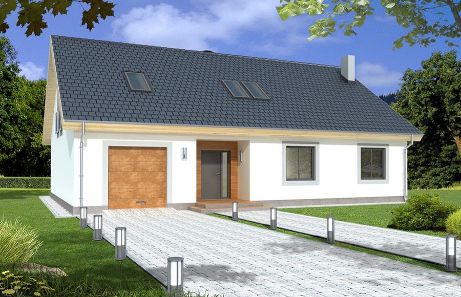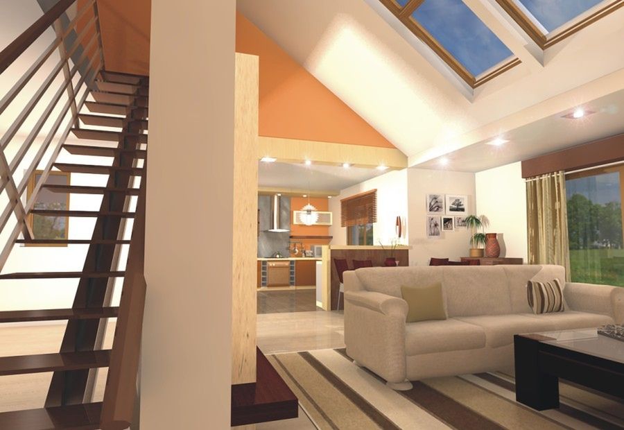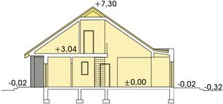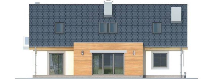 Graficzne opracowanie rzutów poglądowych widocznych na karcie projektu zostało wykonane przez Extradom.pl. Prezentowane przez Extradom.pl wizualizacje wykonane zostały przez autora projektu i należy poczytywać je jedynie za przykład i propozycję wykończenia, wizję architektoniczną autora projektu. Ostateczne wykończenie budynku może nastąpić na wiele sposobów. Szczegółowe rozwiązania zastosowane w oferowanej dokumentacji - w tym również ilość, lokalizacje i wygląd okien, drzwi, kominów - mogą w niewielkim stopniu różnić się od prezentowanej wizualizacji budynku.