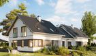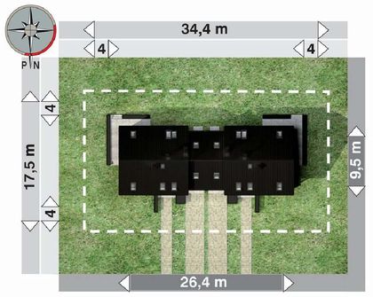 Graficzne opracowanie rzutów poglądowych widocznych na karcie projektu zostało wykonane przez Extradom.pl. Prezentowane przez Extradom.pl wizualizacje wykonane zostały przez autora projektu i należy poczytywać je jedynie za przykład i propozycję wykończenia, wizję architektoniczną autora projektu. Ostateczne wykończenie budynku może nastąpić na wiele sposobów. Szczegółowe rozwiązania zastosowane w oferowanej dokumentacji - w tym również ilość, lokalizacje i wygląd okien, drzwi, kominów - mogą w niewielkim stopniu różnić się od prezentowanej wizualizacji budynku.