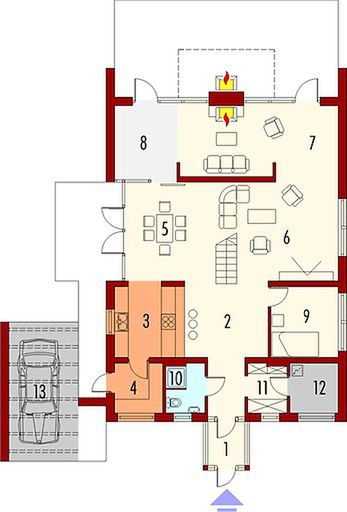 Graficzne opracowanie rzutów poglądowych widocznych na karcie projektu zostało wykonane przez Extradom.pl. Prezentowane przez Extradom.pl wizualizacje wykonane zostały przez autora projektu i należy poczytywać je jedynie za przykład i propozycję wykończenia, wizję architektoniczną autora projektu. Ostateczne wykończenie budynku może nastąpić na wiele sposobów. Szczegółowe rozwiązania zastosowane w oferowanej dokumentacji - w tym również ilość, lokalizacje i wygląd okien, drzwi, kominów - mogą w niewielkim stopniu różnić się od prezentowanej wizualizacji budynku.