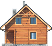 Wysokość ścianki kolankowej: 0.8 m. Ilość drewna na więźbę: 6.22 m³. Strop: drewniany. Pokrycie dachu: dachówka ceramiczna. Ściany zewnętrzne: płazy drewniane + wełna mineralna + deska. Ściany wewnętrzne: płazy drewniane. Typ ogrzewania: kocioł gazowy.