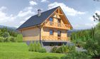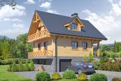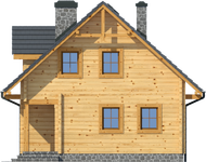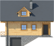Wysokość ścianki kolankowej: 0.83 m. Strop: żelbet + drewniany. Pokrycie dachu: dachówka gontopodobna Gerard Corona. Ściany zewnętrzne: płazy drewniane + wełna mineralna + deska. Ściany wewnętrzne: płazy drewniane. Typ ogrzewania: kocioł gazowy lub kocioł na paliwo stałe. Inne: brama garażowa Hörmann.