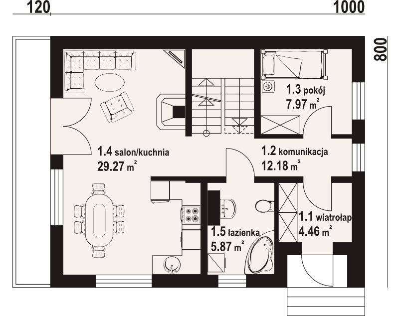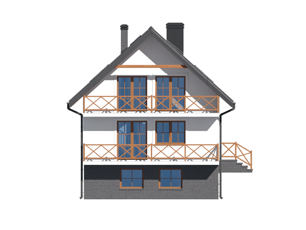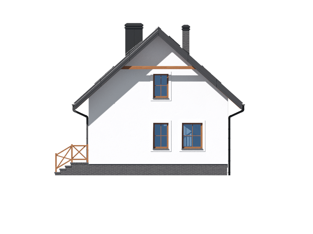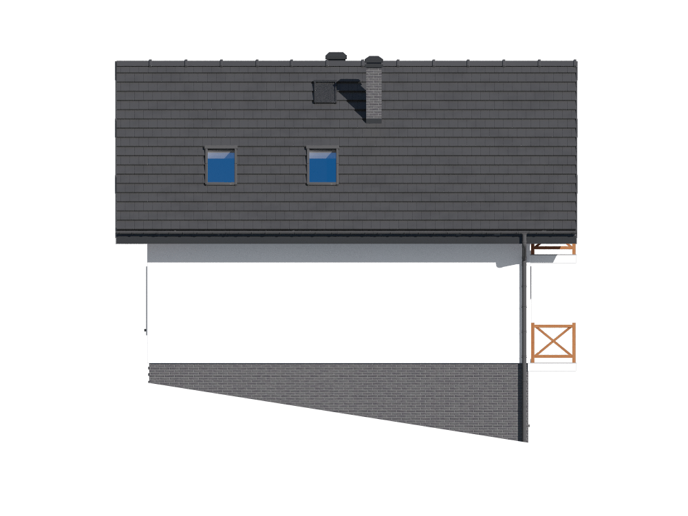 Graficzne opracowanie rzutów poglądowych widocznych na karcie projektu zostało wykonane przez Extradom.pl. Prezentowane przez Extradom.pl wizualizacje wykonane zostały przez autora projektu i należy poczytywać je jedynie za przykład i propozycję wykończenia, wizję architektoniczną autora projektu. Ostateczne wykończenie budynku może nastąpić na wiele sposobów. Szczegółowe rozwiązania zastosowane w oferowanej dokumentacji - w tym również ilość, lokalizacje i wygląd okien, drzwi, kominów - mogą w niewielkim stopniu różnić się od prezentowanej wizualizacji budynku.