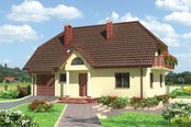 Graficzne opracowanie rzutów poglądowych widocznych na karcie projektu zostało wykonane przez Extradom.pl. Prezentowane przez Extradom.pl wizualizacje wykonane zostały przez autora projektu i należy poczytywać je jedynie za przykład i propozycję wykończenia, wizję architektoniczną autora projektu. Ostateczne wykończenie budynku może nastąpić na wiele sposobów. Szczegółowe rozwiązania zastosowane w oferowanej dokumentacji - w tym również ilość, lokalizacje i wygląd okien, drzwi, kominów - mogą w niewielkim stopniu różnić się od prezentowanej wizualizacji budynku.