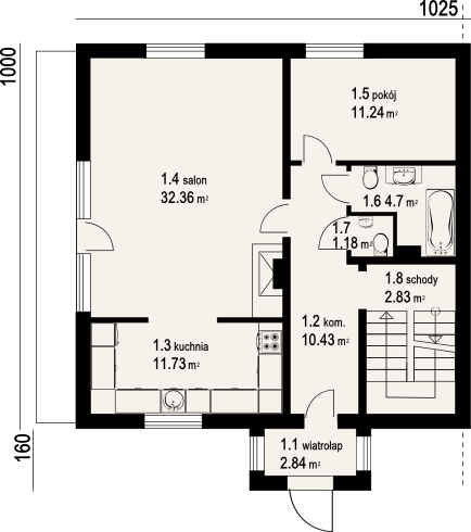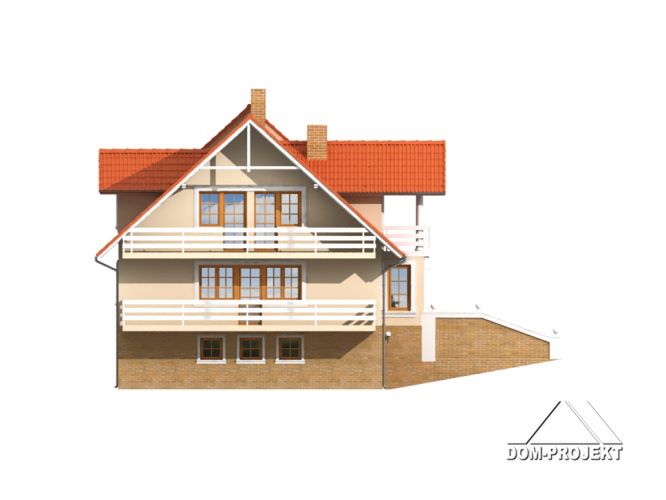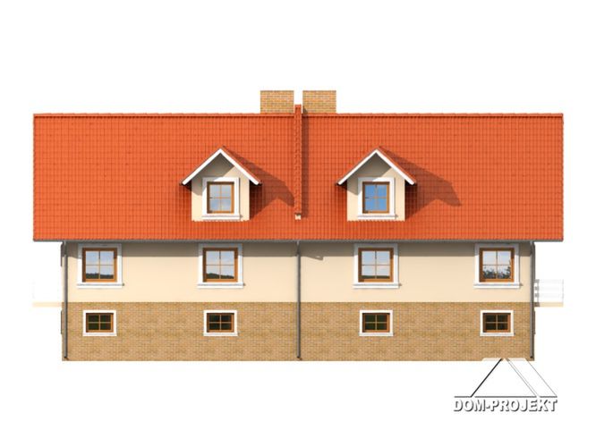 Graficzne opracowanie rzutów poglądowych widocznych na karcie projektu zostało wykonane przez Extradom.pl. Prezentowane przez Extradom.pl wizualizacje wykonane zostały przez autora projektu i należy poczytywać je jedynie za przykład i propozycję wykończenia, wizję architektoniczną autora projektu. Ostateczne wykończenie budynku może nastąpić na wiele sposobów. Szczegółowe rozwiązania zastosowane w oferowanej dokumentacji - w tym również ilość, lokalizacje i wygląd okien, drzwi, kominów - mogą w niewielkim stopniu różnić się od prezentowanej wizualizacji budynku.