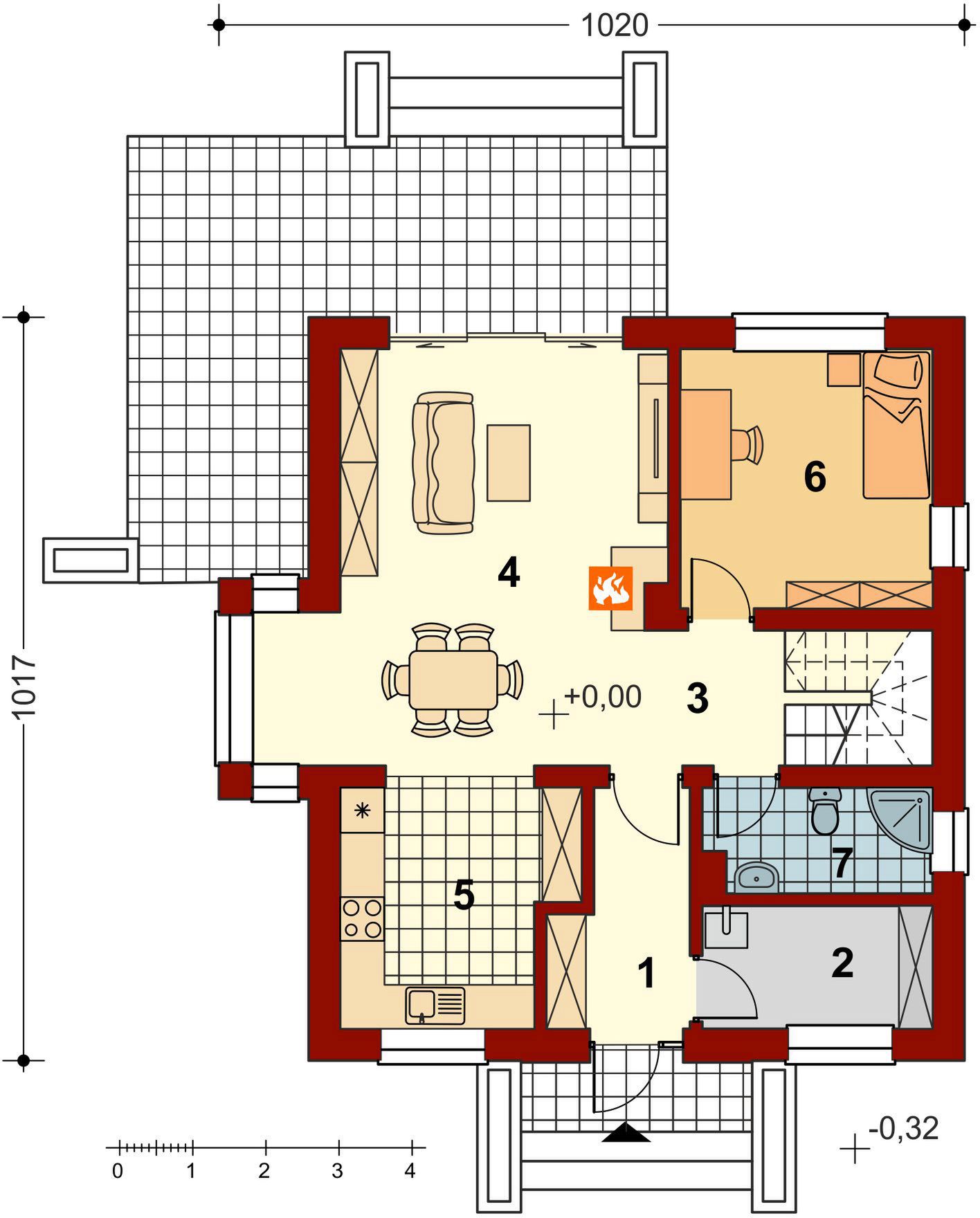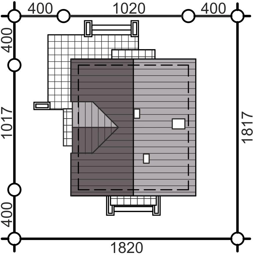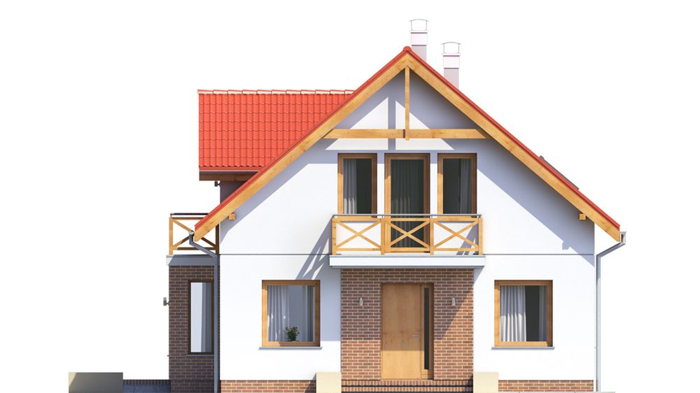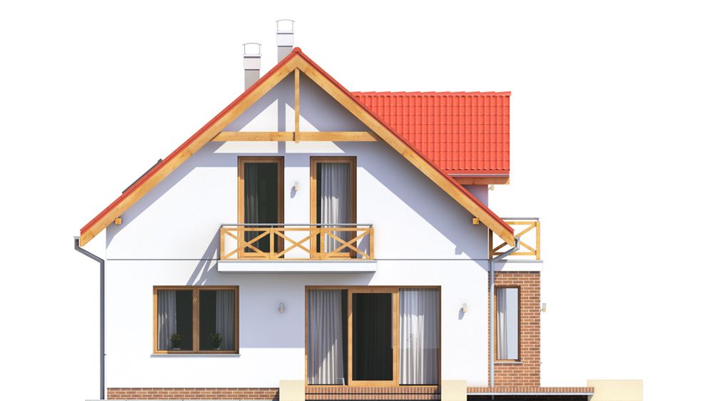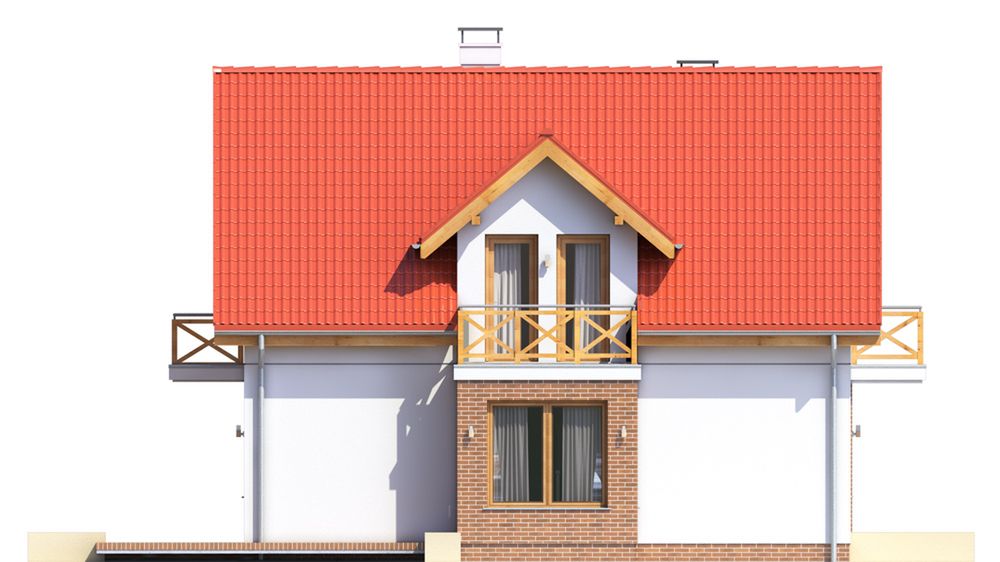 Graficzne opracowanie rzutów poglądowych widocznych na karcie projektu zostało wykonane przez Extradom.pl. Prezentowane przez Extradom.pl wizualizacje wykonane zostały przez autora projektu i należy poczytywać je jedynie za przykład i propozycję wykończenia, wizję architektoniczną autora projektu. Ostateczne wykończenie budynku może nastąpić na wiele sposobów. Szczegółowe rozwiązania zastosowane w oferowanej dokumentacji - w tym również ilość, lokalizacje i wygląd okien, drzwi, kominów - mogą w niewielkim stopniu różnić się od prezentowanej wizualizacji budynku.