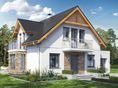 Graficzne opracowanie rzutów poglądowych widocznych na karcie projektu zostało wykonane przez Extradom.pl. Prezentowane przez Extradom.pl wizualizacje wykonane zostały przez autora projektu i należy poczytywać je jedynie za przykład i propozycję wykończenia, wizję architektoniczną autora projektu. Ostateczne wykończenie budynku może nastąpić na wiele sposobów. Szczegółowe rozwiązania zastosowane w oferowanej dokumentacji - w tym również ilość, lokalizacje i wygląd okien, drzwi, kominów - mogą w niewielkim stopniu różnić się od prezentowanej wizualizacji budynku.